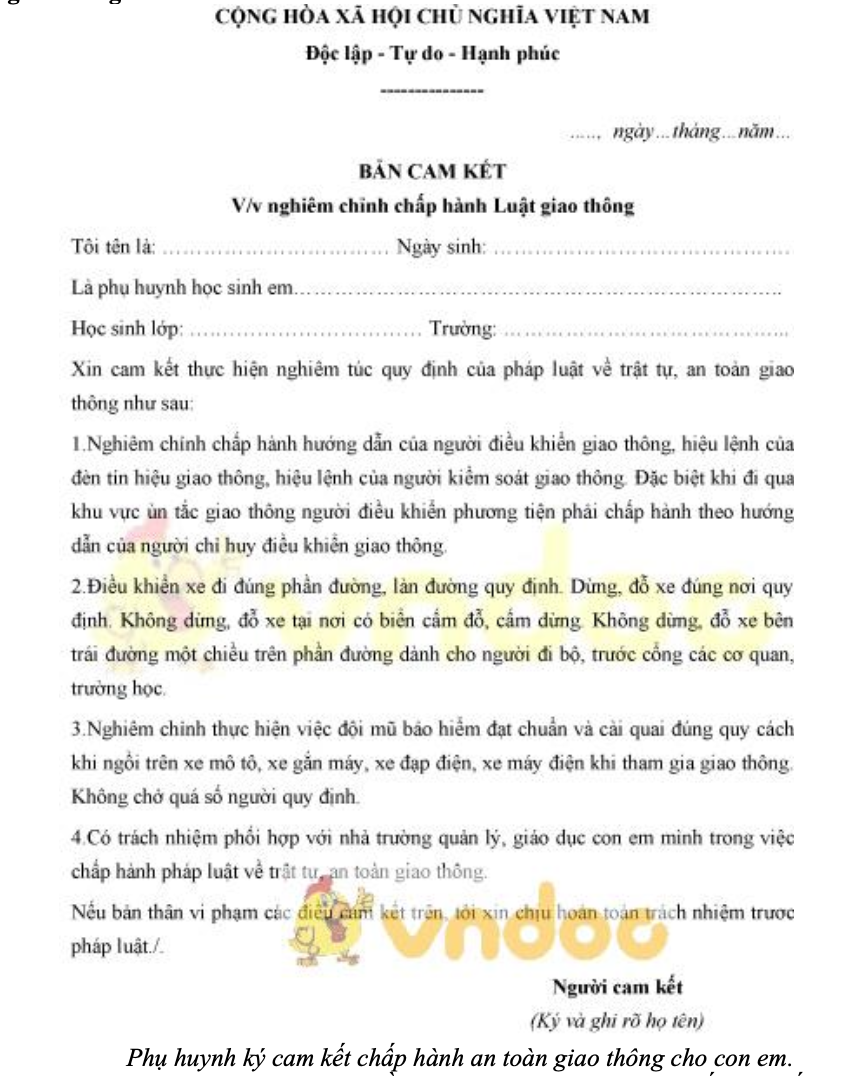 Lớp gia đình: Quản lý, giáo dục, nêu gương; cam kết không giao xe khi học sinh chưa đủ tuổi.