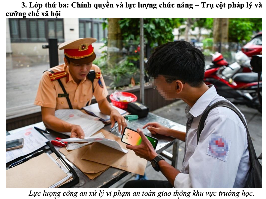 Lớp chính quyền: Tuần tra, xử lý vi phạm; hoàn thiện hạ tầng giao thông khu vực xung quanh trường học.